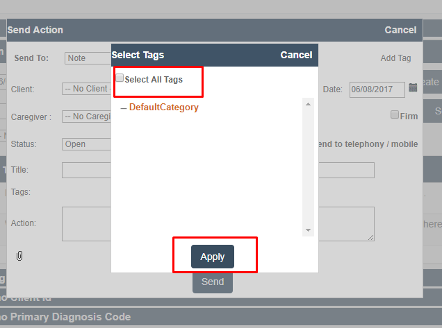 Finally, write your message to the caregiver in the Action field. A Title can also be added if desired.