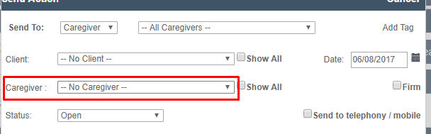 Next select Send To: Caregiver from the Send To: drop-down list.
