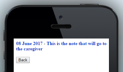 After the message has been read and the caregiver has clicked Back, the message will disappear from the caregiver's device.