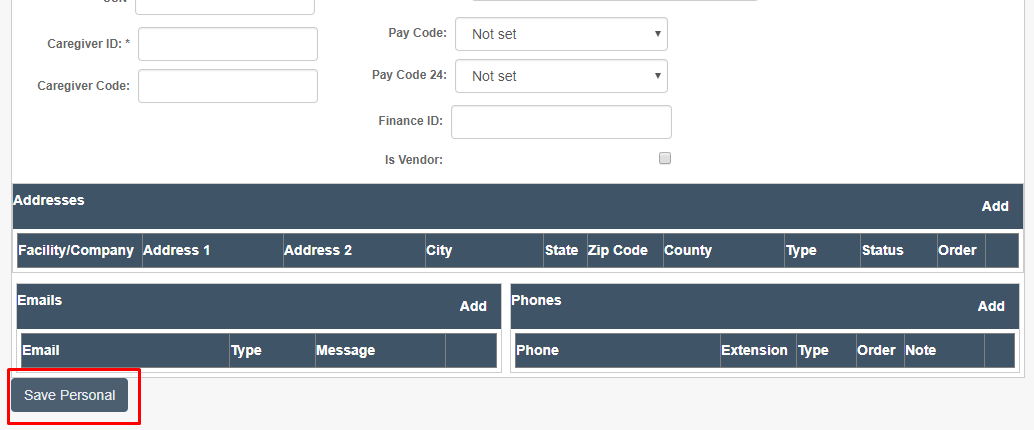 Scroll to bottom of page and click on Save Personal and the administrator add will be complete.